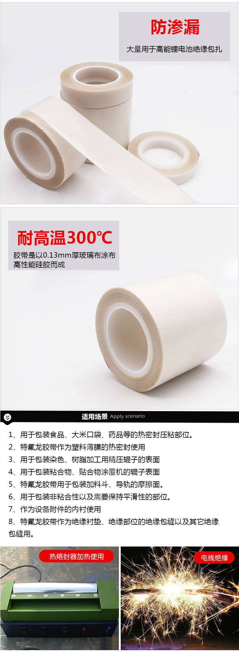 白色铁氟龙胶带 耐高温特氟龙胶带 耐300度高温 防火防烫耐热绝缘胶带切袋机真空机包装封口布胶布