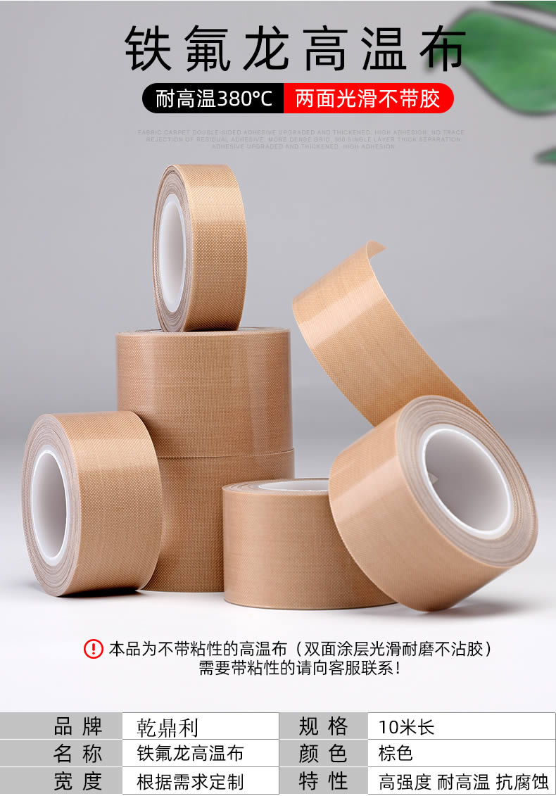 双面光滑特氟龙高温布不带胶耐温380度铁氟龙高温布 聚四氟乙烯隔热绝缘耐磨防烫滚筒保护低摩擦高温布