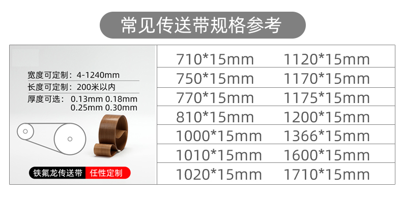 自动封口机塑封机配件制袋机传送带 铁氟龙皮带环形带封口带输送带FR770 FR800 FR900 FR980机型特氟龙带