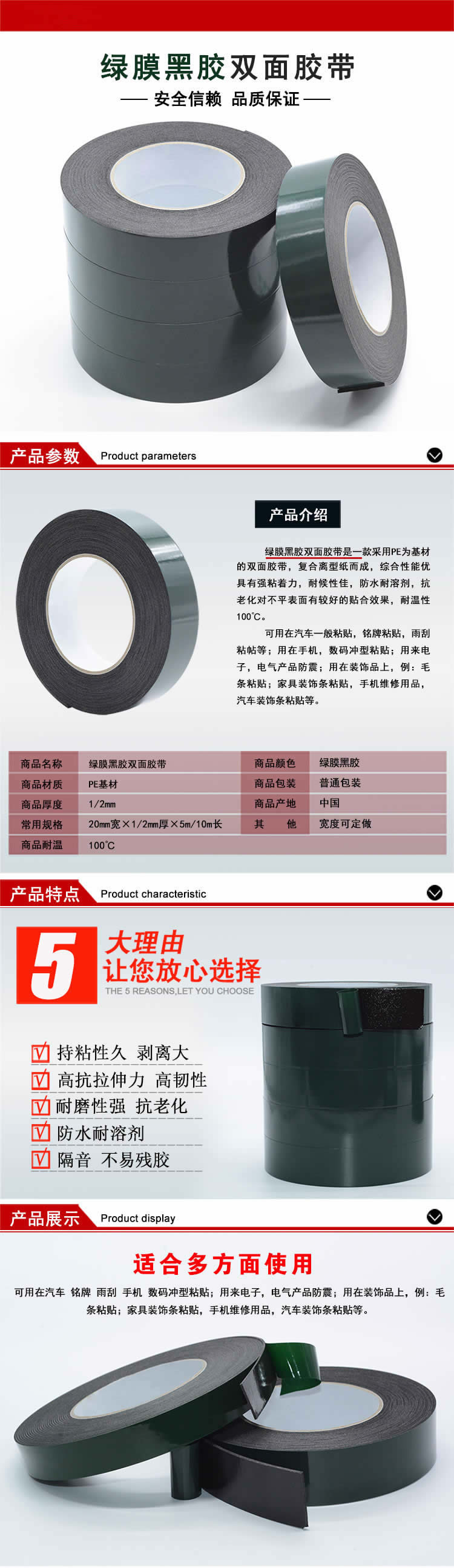 PE泡棉双面胶带 0.5mm-3mm红膜绿 蓝膜 白色灰色黑色 多规格可选