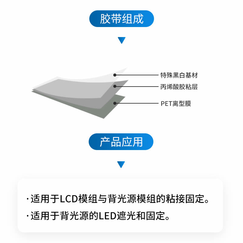适用于LCD模组与背光源模组的粘接固定。