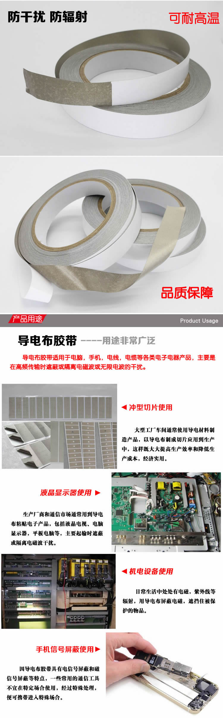 ●具有良好的导电性及电磁波屏蔽效果,富有柔韧性,易加工冲型,包覆等。
