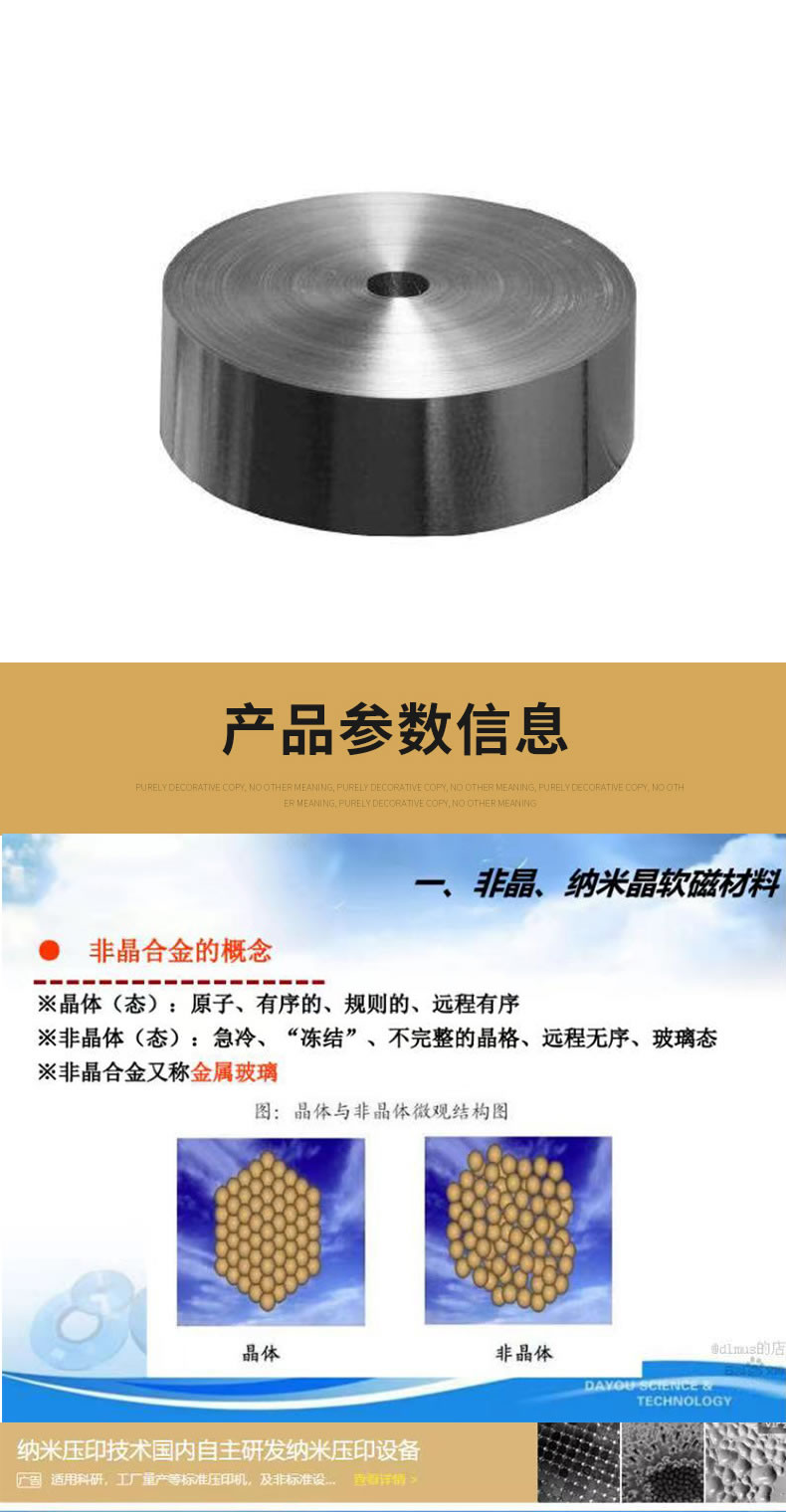 加工定制纳米晶带材 纳米晶带软磁材料 电动汽车充电桩用隔磁材料