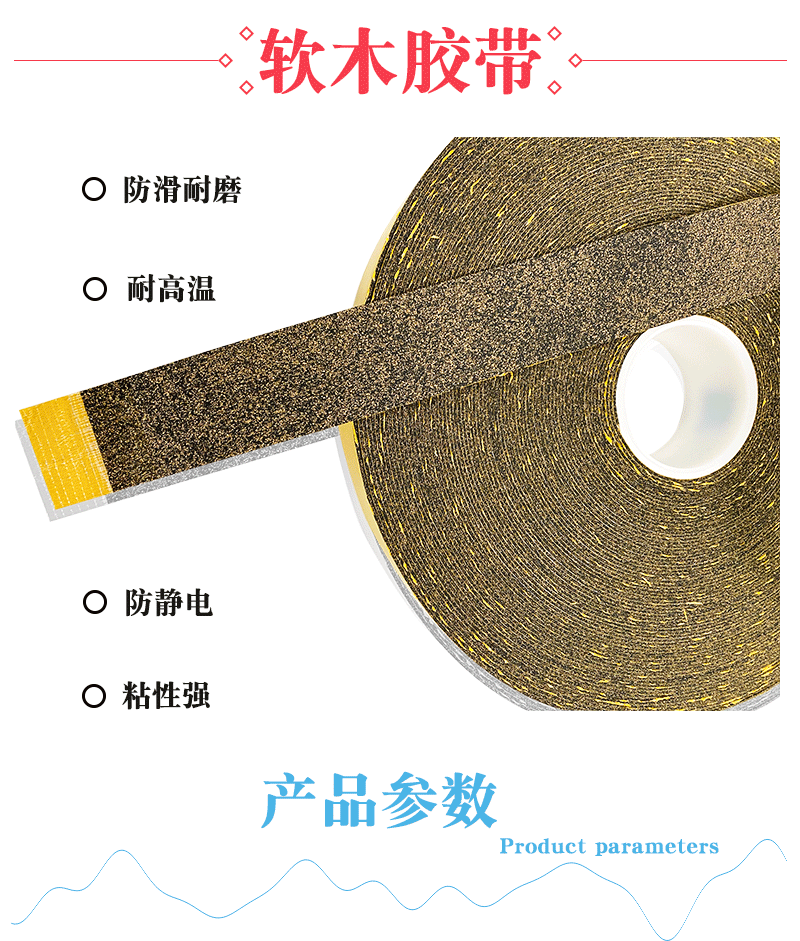 软木带防滑 导辊防位移 张力稳定耐磨耐温防静电糙面软木橡胶带