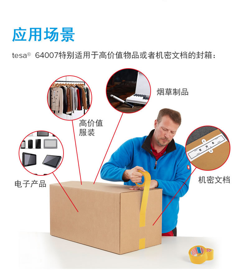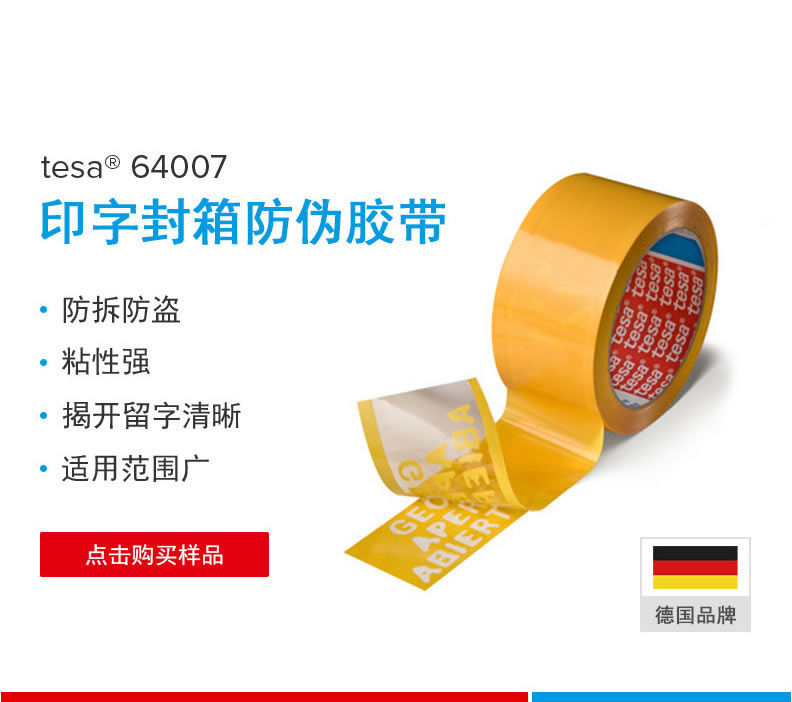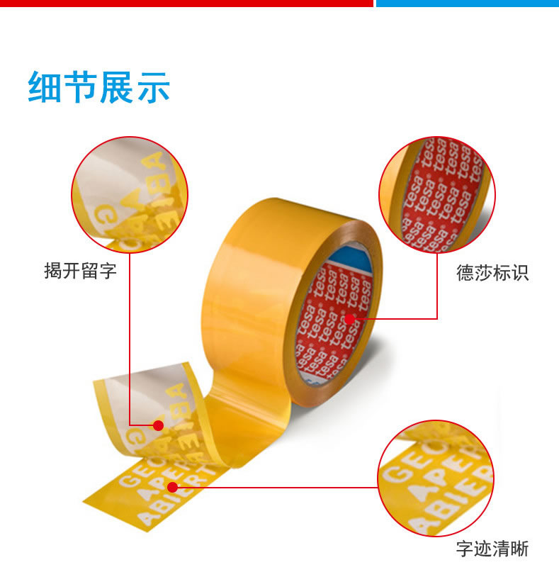 德莎64007-tesa64007 印字封箱防伪胶带密封保护防拆防盗防揭胶带