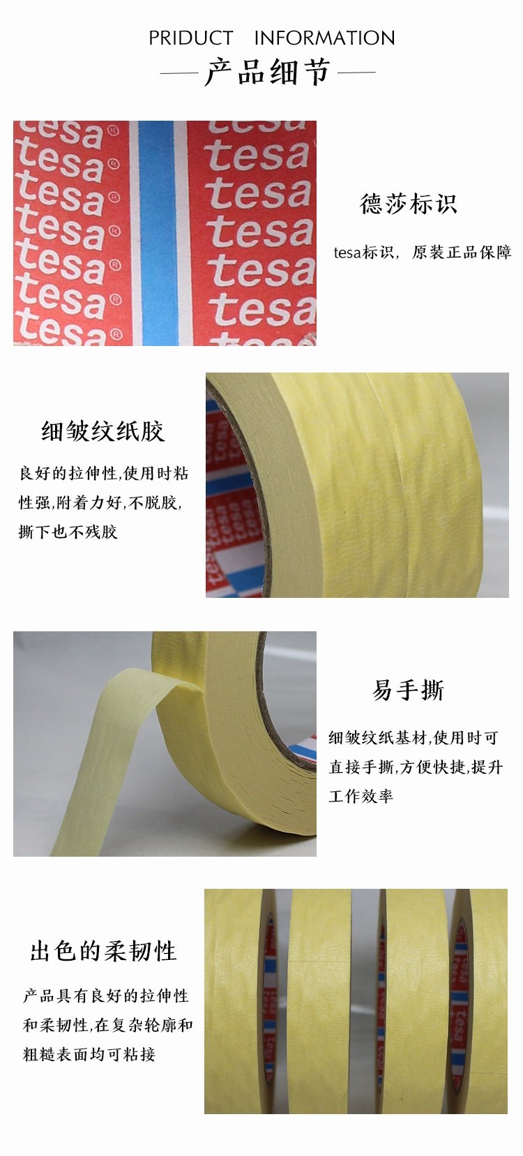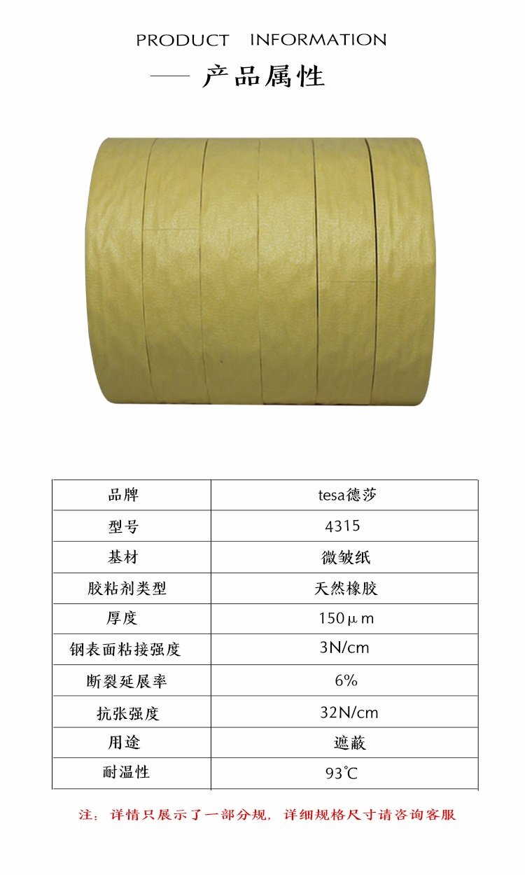 德莎tesa 4315 耐高温美纹纸胶带 汽车烤漆喷漆遮蔽 不留残胶