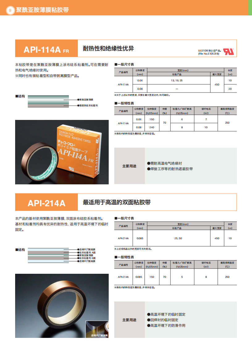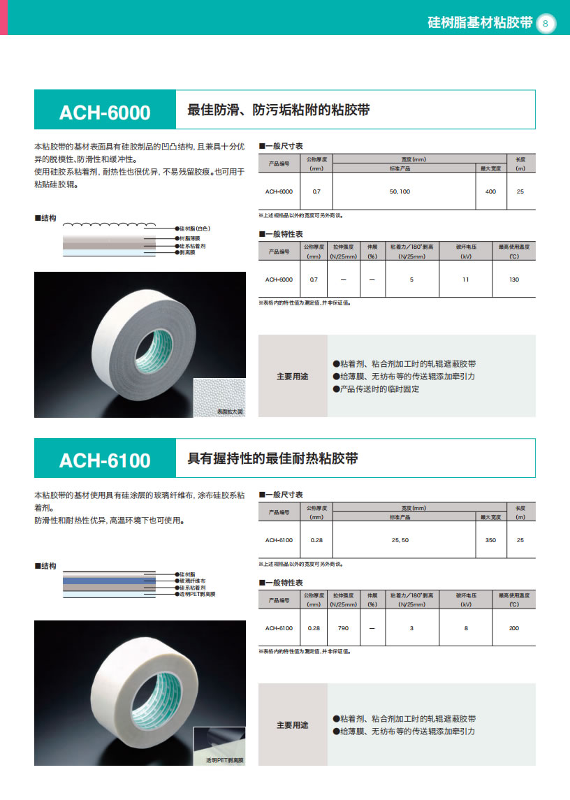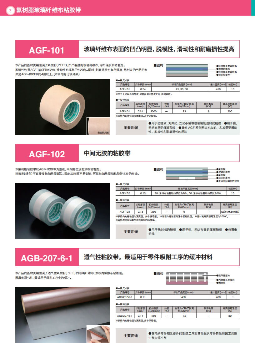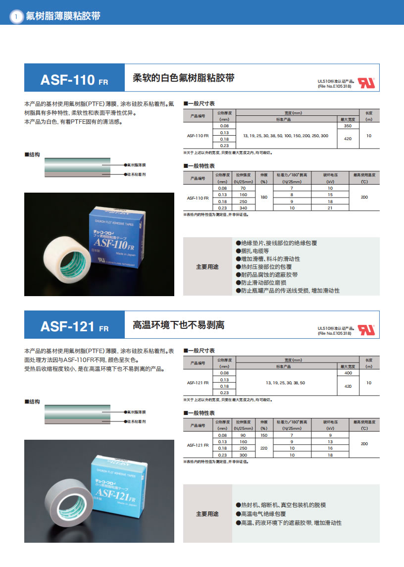 - 产品详情用途・热封条机压接部的覆盖物・料斗·滑槽的摩擦面衬里・绝缘胶带・绝缘用隔离物・接线部位的绝缘覆盖物等等使用温度范围-60°C〜+200°C结构特长●具备柔软性、伸缩性,以及对对象物形状的追随性。●胶带表面具有优秀的非粘着性、分离性、滑动性、耐化学药品性、防水性。●具有优秀的电流绝缘性、耐候...
