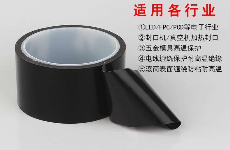 黑色特氟龙胶带高温胶带高温布铁氟龙特芙蓉耐高温胶带真空机包装封口机绝缘防火防烫隔热3M5417代替品