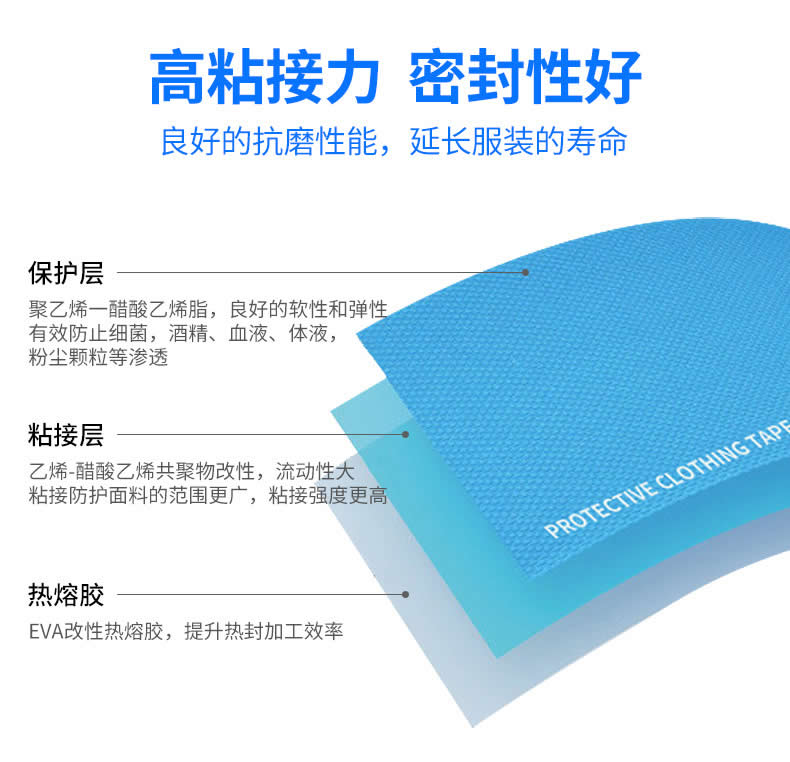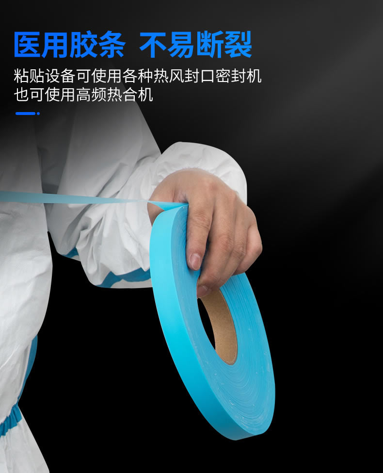 厂家直销蓝色一次性防护服隔离服EVA防水热封压用胶条胶带
