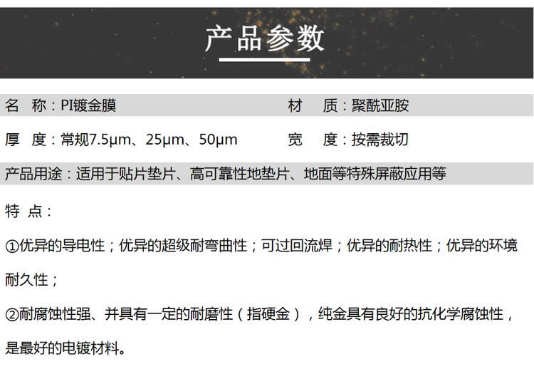 PI镀金膜 聚酰亚胺镀金膜 kapton镀金膜 航天航空聚酰亚胺镀稀有金属膜 导电传热薄膜